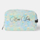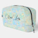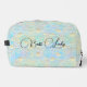 On this stylish print cut sew dopp kit are gold luminous flowers raining down on soft muted pink, blue, and green pastels. Can be personalised on front and back or keep as is with the phrase "Boss Lady"
