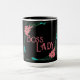 "Boss Lady" Coffee/Tea Mug. Empower your female boss this National Boss's Day with a stunning "Boss Lady" coffee/tea mug. Featuring an elegant black background and sophisticated Art Deco-style floral side frames in shades of turquoise, dusty rose, cream, and foliage green, this journal cover is both stylish and empowering. She'll love having her tea or coffee in this amazing mug, besides reminding her how much she means to you, with this thoughtful gift that celebrates her leadership and grace. Show her how much she inspires with this beautifully designed keepsake! Check out the coordinating journal and desk mat. Make her day with one, a pair or all of these items.