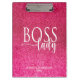 Boss Lady Pink Sparkle and White Script Clipboard