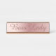 Show off your sense of humour at the office with this fun, modern desk sign. It says Boss Lady in a trendy cursive script, on a faux rose gold background, in a rose gold holder.