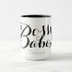 Customise this "Bossy Babe" mug with a name. You may also change the background colour of the mug to any colour you choose.