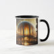 Prepare to be mesmerised by the Boston Airship, a coffee mug that transports you to a world of wonder and enchantment. Encapsulated within gleaming gold bubbles are two captivating scenes of cities lost to the sands of time and the vastness of space. Gaze in awe at the intricate stone architecture, towering spires, and lush vines that adorn these forgotten realms. Bridges arch gracefully over shimmering waters, their reflections mirroring the captivating landscapes.