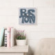 Celebrate Boston with this wall clock featuring blue denim-style letters. Personalize it to create a special gift for Boston fans or classic New England decor.