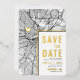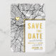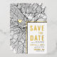 A unique save-the-date invitation card featuring a map of the city of Boston. It features several unique features that make an impression on your future guest, including the names of the bride and groom, the city name, and the words "Save the Date" in gold foil. A gold foil heart symbol pinpoints your location of love in the city. The city map is on the front and reverse sides and can be scaled and moved around. All elements of this invite are unlocked, so have fun being creative and making it fit your style.