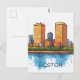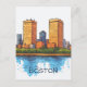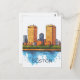 Cute postcard design featuring two tall buildings inspired by Boston, MA skyline. This illustrative postcard is great for those who travel to Boston, MA - USA.