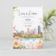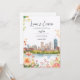 This wedding invitation features a painting of Boston, Massachusetts city skyline with trees illustration.