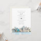 This wedding invitation features a watercolor painting of the Boston, Massachusetts city skyline. Easily edit *most* wording to meet your event needs. Change the background colour and add your own photo to the backside if you like.