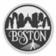 This fresh black-and-white illustration of the Boston skyline features many familiar landmarks, including the capitol building, the custom house tower, the Hancock, Old Hancock, and Prudential buildings, as well as the Zakim bridge and financial district.