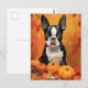 A Colourful autumn and thanksgiving portrait of a Boston Terrier.