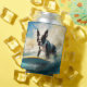 Boston Terrier Beach Surfing Painting Can Cooler
