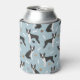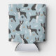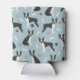 Cute Boston Terrier dogs with black and white coats sit and stand scattered dog bones and paw prints pattern.