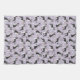Cute Boston Terrier dogs with black and white coats sit and stand scattered dog bones and paw prints pattern.