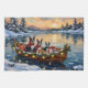 Bring friendly, tuxedo-coated charm to your holiday season with this adorable Boston Terrier Christmas design! This magical scene features three cute, dapper Boston Terriers sitting contentedly in a cozy wooden boat, gently floating on a serene snowy lake at sunset. The boat is beautifully adorned with glowing Christmas string lights and fragrant pine garlands, while the dogs wear festive scarves. They are surrounded by colorful wrapped presents and cheerful holly branches. Soft snowflakes gently fall, and the shimmering reflection of the lights on the water creates a truly magical winter holiday atmosphere. This design is a perfect Christmas gift for any Boston Terrier owner, dog lover, or admirer of festive and beloved small dog art, capturing the serene joy of the season.