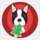 Boston Terrier with Christmas Tree Cookie Christmas Stickers! These stickers are customisable! Personalise with your text and change the background colour!
