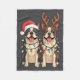 Boston Terrier Christmas Santa Hat Reindeer Lights Fleece Blanket