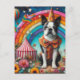 An adorable Boston Terrier in a cute outfit with a circus tent in the background AI generated art