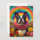 An adorable Boston Terrier in a field of wildflowers with a circus clown collar AI generated art