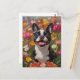 A charming Boston Terrier sits happily in a vibrant wildflower field, surrounded by bursts of colourful blossoms in pink, yellow, and purple. This lively artwork captures the joyful energy of the breed and the beauty of nature in full bloom.