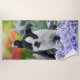 A young cute Boston Terrier female puppy, black with white markings, in a flowery garden. Boston Terriers, also called Boston Bulls or "American Gentlemen", are a gentle, friendly and intelligent dog breed for companionship. A puppy-eyed doggy photo taken by Katho Menden, this beach towel is an enchanting gift idea for dog lovers. http://www.zazzle.com/kathom_photo You can add your own text by pressing the customise it button.