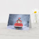 Boston Terrier Dog in Snow sitting in Christmas Card