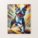 Boston Terrier Dog Portrait Acrylic Art Print Dog Jigsaw Puzzle