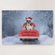 Boston Terrier Dog Snow sitting in Christmas Truck Jigsaw Puzzle