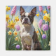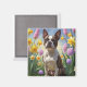 Boston Terrier Dog Spring Flowers Painting Magnet