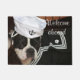 Black and white Boston terrier with "Welcome aboard" message, dog is wearing sailor outfit.  Please feel free to add, change, or remove text if you like.