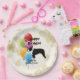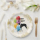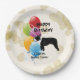 Boston Terrier related birthday custom 9" paper plate using tan leaves and balloons unique original paintings, drawings added to digital graphic designs TO CUSTOMIZE & CHANGE DESIGN * CHANGE TYPE OR COLOR SCHEME * ADD YOUR FAVORITE IMAGE * ADD, CHANGE TEXT OR DELETE TO LEAVE IT BLANK