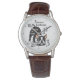 The watch looks really great! Very sharp and well done. The leather band is really nice, though for a man's watch I think it should be longer. Unfortunately, it isn't big enough for my husband's wrist but I will get a replacement because he is very excited to wear it!