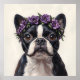 Boston Terrier in a Purple Flower Crown Poster