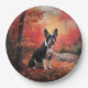 Boston Terrier in Autumn Leaves Fall Inspire Paper Plate
