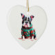 Boston Terrier in Christmas Sweater Ceramic Tree Decoration