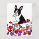 Unique and funny Dog Art painted by Naomi Ochiai from Japan. A cute Boston Terrier is doing something mischief in the box. There are lots of hearts around the pup. For Boston Terrier Fans! You can customise text and more!