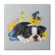 Adorable Boston Terrier plays in garden of colourful flowers when large bumble bee lands on his nose. This is a Ooak Friskybizpet Design and is available on apparel, household and office items, posters, greeting cards, and many more fun merchandise for fans of the Boston Terrier Dog.