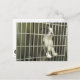 A sad Boston Terrier Puppy pouts as it is kept in a cage at a shelter. This Adorable design is on a 5.6" x 4.25" Postcard.