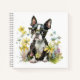 Boston Terrier Puppy with Glasses in Wildflowers Notebook