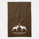 Boston Terrier Silhouettes with Heart and Text Tea Towel