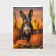 Embrace the rustic charm of Thanksgiving with our stunning card showcasing a Boston Terrier in a harvest field as the sun sets in the background. Share the warmth and beauty of the holiday with your loved ones through this exquisite card.