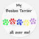 Boston Terrier Walks All Over Me Classic Round Sticker