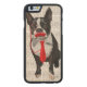 Boston Terrier With Red Tie and Moustache 2 Carved Wood iPhone Case
