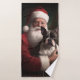Boston Terrier With Santa Claus Festive Christmas Bath Towel Set
