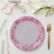 Fully covered with photographic collage of sweet pink garden flowers. Lime green flower centre makes for decorative fresh spots. The main area of this plate is covered with semi transparent white to make the food area a bit tidier.
