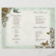 A beautiful, fun and inexpensive option for combined wedding and reception programs. These will be shipped to you flat and you will need to fold them in 1/2 or most local print shops will do this for you at a nominal charge. NOTE: DO NOT SELECT THE CARD STOCK OPTION FOR THIS! This is a flat printed program for ceremonies or for receptions. COLOR PALETTE: cream, tan, aqua blue, teal blue, chocolate brown, green and gold. DESIGN COLLECTION: This artwork is a mix of brand new watercolors by Audrey Jeanne Roberts and layersof vintage art elements including:Carved etched printer's ornament decorative etchings with swirls, floral elements flowers, leaves and baroque flourishes. This vintage inspired wedding collection has a complete ensemble of products and can be created in several colorways. If you would like it to match your wedding let us know via email and we'll be happy to assist you. This design consists of a chocolate brown carved swirl flourish detail paired with a blue vintage bird and a aqua blue, yellow and black botanical butterfly. Various background colours are available.