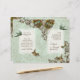 A beautiful, fun and inexpensive option for wedding programs. These will be shipped to you flat and you will need to fold them in 1/2 or most local print shops will do this for you at a nominal charge. NOTE: DO NOT SELECT THE CARD STOCK OPTION FOR THIS! This is a flat printed program for ceremonies or for receptions. COLOR PALETTE: cream, tan, aqua blue, teal blue, chocolate brown, green and gold. DESIGN COLLECTION: This artwork is a mix of brand new watercolors by Audrey Jeanne Roberts and layersof vintage art elements including:Carved etched printer's ornament decorative etchings with swirls, floral elements flowers, leaves and baroque flourishes. This vintage inspired wedding collection has a complete ensemble of products and can be created in several colorways. If you would like it to match your wedding let us know via email and we'll be happy to assist you. This design consists of a chocolate brown carved swirl flourish detail paired with a blue vintage bird and a aqua blue, yellow and black botanical butterfly. Various background colours are available.