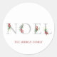 Winter botanical boughs, branches, and berries, adorned "NOEL" in festive silver and white, personalised holiday sticker.