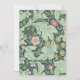 The background is the wallpaper pattern "Leicester" by Morris & co (by the British designer John Henry Dearle ((1859 –1932) based on a work by William Morris), from 1912, now in the public domain.It is dominated by green leaves on a dark background, but has also some white-red , white-blue and yellow flowers.