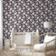 Botanical Blue Beige Lily Floral Pattern Wallpaper