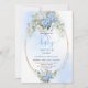 Create a beautiful first impression with this baby shower invitation, expertly printed using Zazzle’s premium, professional-grade printing. Designed with soft watercolor blue hydrangeas, eucalyptus greenery, and elegant gold accents, this invitation blends timeless floral charm with a modern, refined look that suits classic, botanical, and contemporary baby showers.