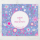 Modern bright and happy pink and white botanical wild flower pattern on a periwinkle blue background.